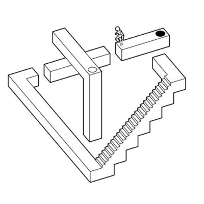あるいは、もう一つ手前の階段とつながっているように見せることも可能であろう。